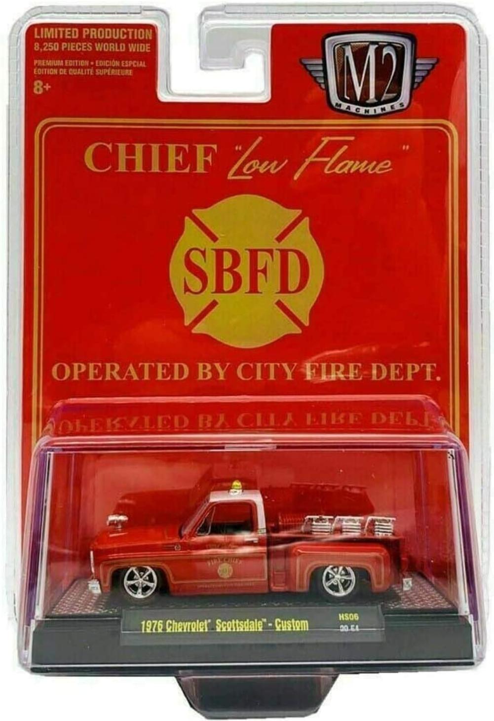 M2 Machines 1976 Chevy Scottsdale Custom Square Body Fire Truck Red Fire Chief Low Flame Sbfd Fire Dept Ltd Ed 8250pcs 1 64 Diecast 31500 Hs06 Brand New Box Real By Brand M2 Machines